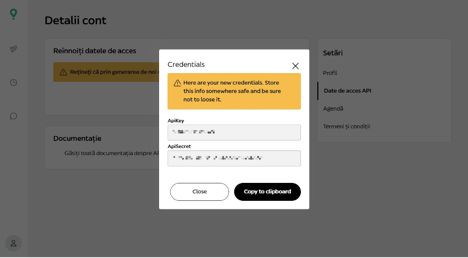 - Save the access data (ApiKey and ApiSecret) in a secure location.